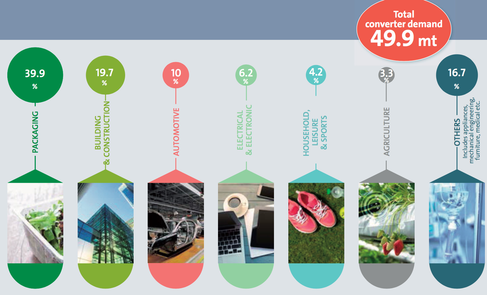 Consumption of plastics by segments (Source: PlasticsEurope)
