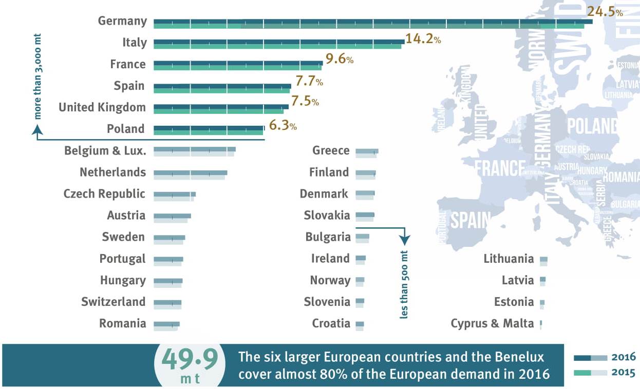 - Processing in the EU amounts to 49,9 mil. tons.